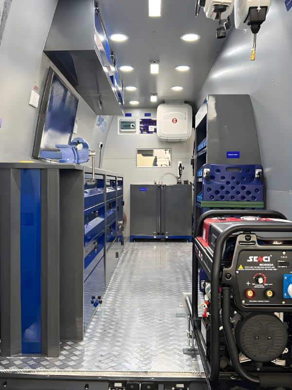ورش العمل المتنقلة هي وحدات متطورة تم تصميمها خصيصًا لتقديم خدمات الصيانة والإصلاح والدعم الفني في مواقع العمل الميدانية والبيئات الصعبة والنائية. تم تطوير هذه الوحدات مع التركيز على الكفاءة، والاعتمادية، والمرونة، حيث يتم تجهيزها بالكامل للتعامل مع مجموعة واسعة من المهام الفنية في مختلف القطاعات. سواء لدعم العمليات الميدانية أو المواقع الصناعية أو خدمات الطوارئ، فإنها تساهم في تقليل فترات التوقف، وزيادة الإنتاجية، وضمان استمرارية التشغيل بكفاءة عالية في الظروف الحرجة.