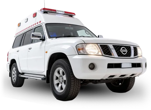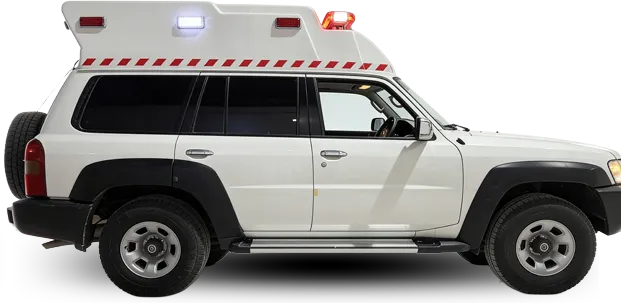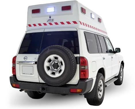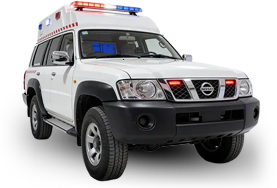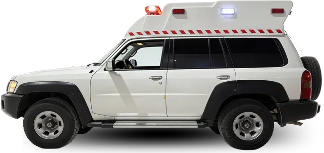 سيارة إسعاف ميدانية مصممة للتضاريس الوعرة، مبنية على نيسان باترول، ومثالية للاستجابة الطبية في الصحارى والمناطق النائية.