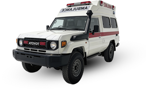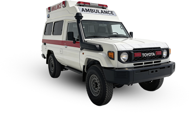 سيارة إسعاف ميدانية مصممة للبيئات القاسية، مبنية على تويوتا لاند كروزر، وتوفر قدرة تنقل موثوقة في المناطق النائية والطرق الوعرة.